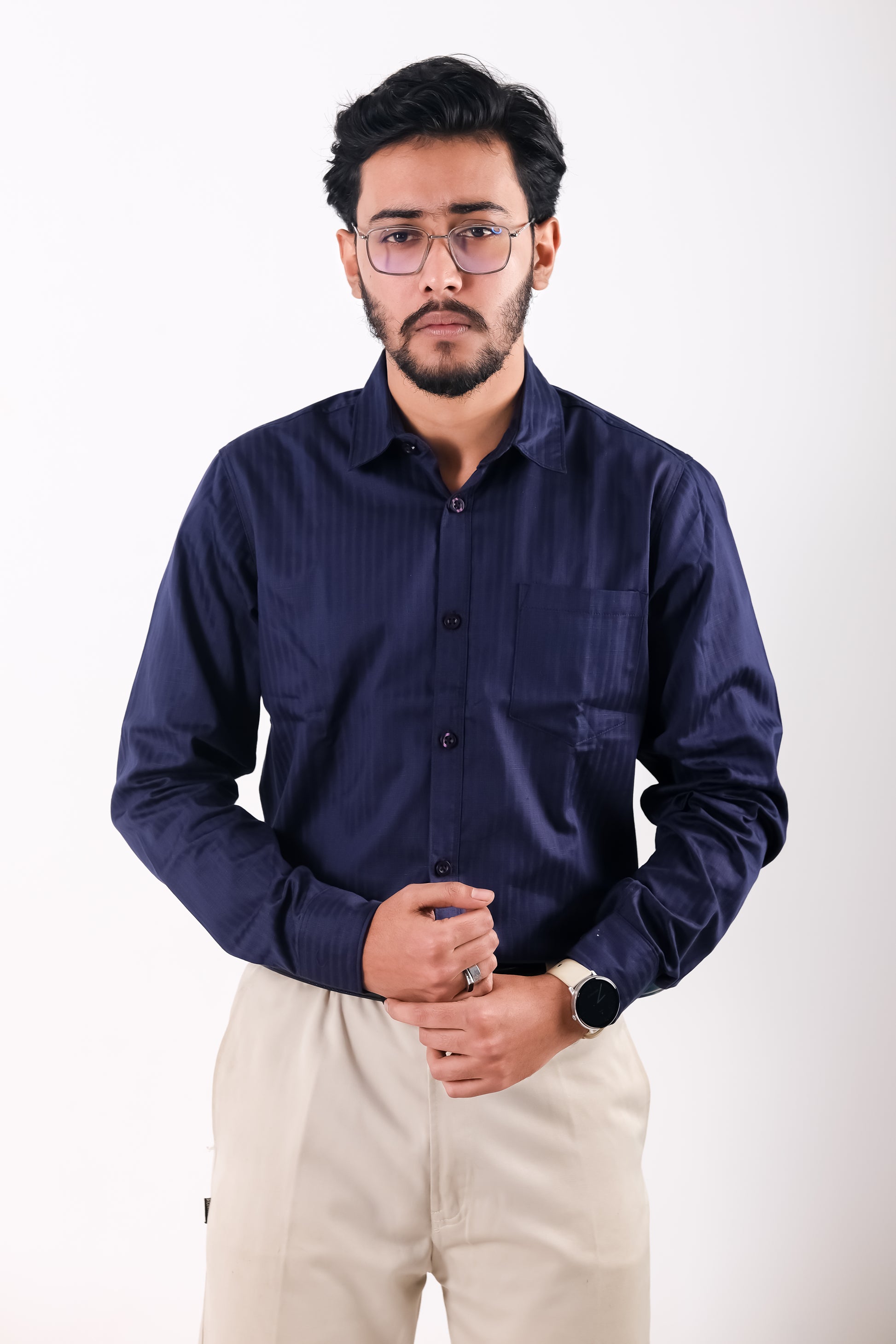 Upgrade your everyday style with our Premium Fine Cotton Self-Stripe Shirt, designed for comfort and effortless sophistication. Crafted from high-quality fine cotton fabric.
