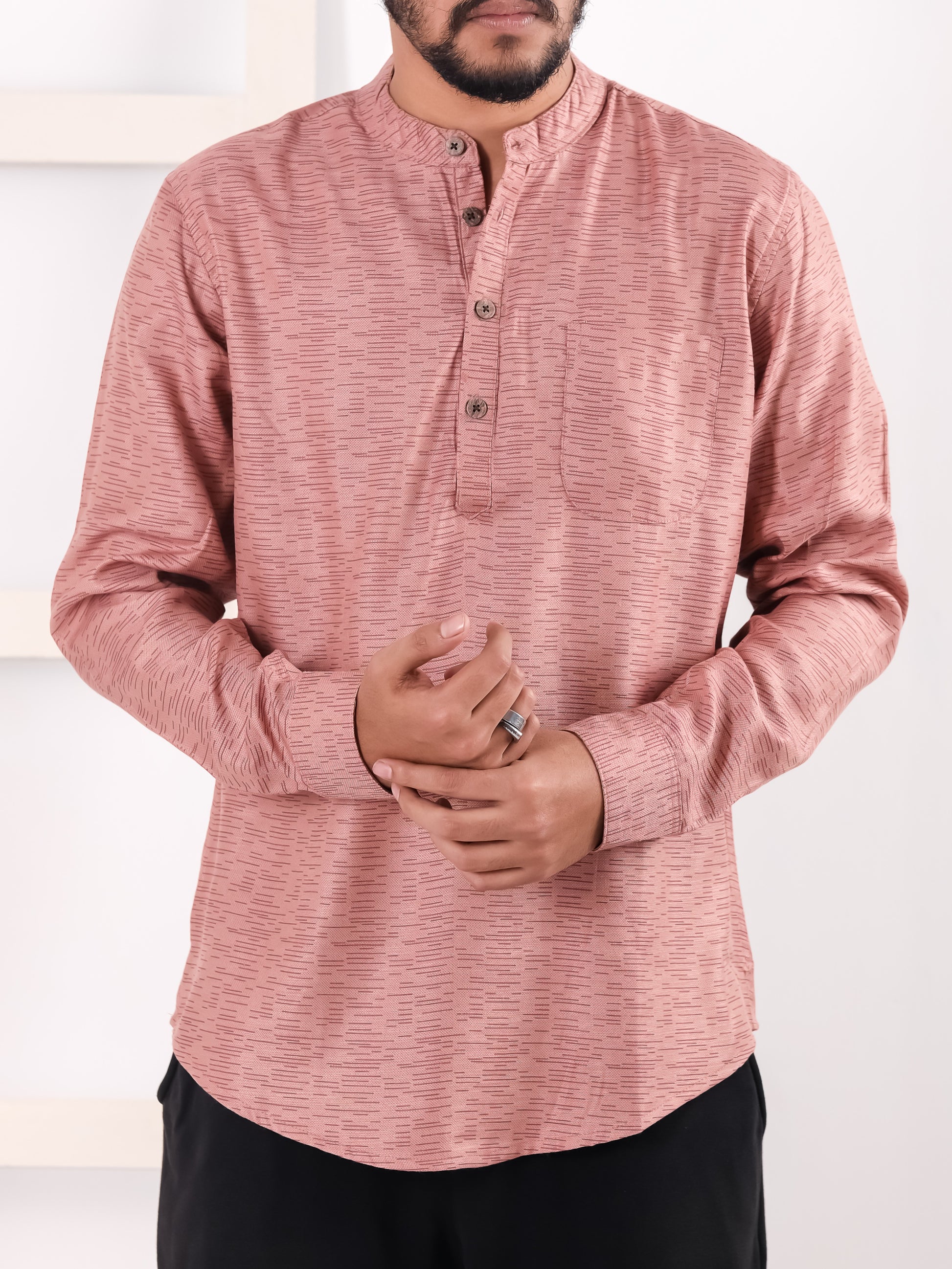 Designed for effortless sophistication, this Katua is crafted from premium Remi Rayon Cotton fabric that offers a soft, breathable feel with a smooth natural drape. The lightweight construction ensures all-day comfort, while the subtle textured finish adds refined character without overpowering the look.
